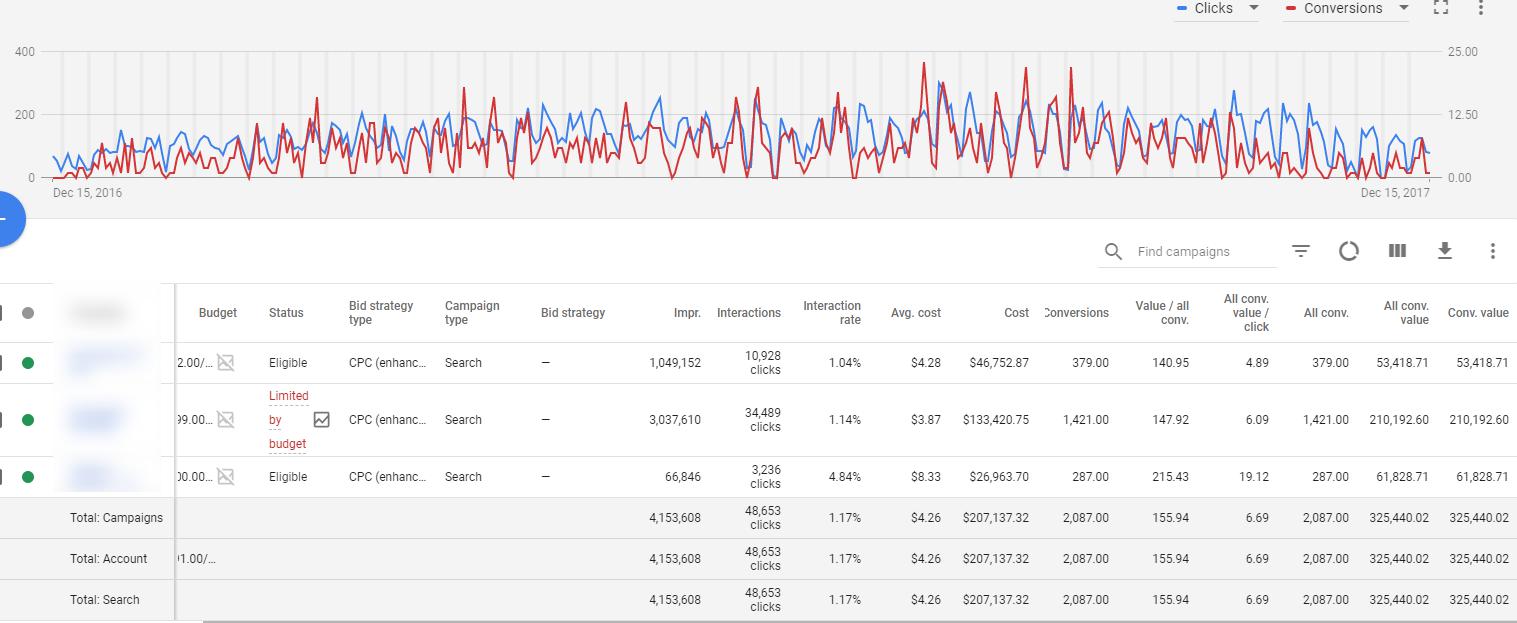 Revenue came from AdWords (12 months): $325,440